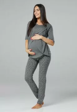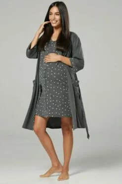 Happy Mama Nursing- Nachtjapon – Bottle Green And Grey Melange