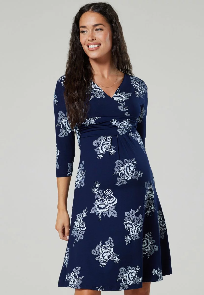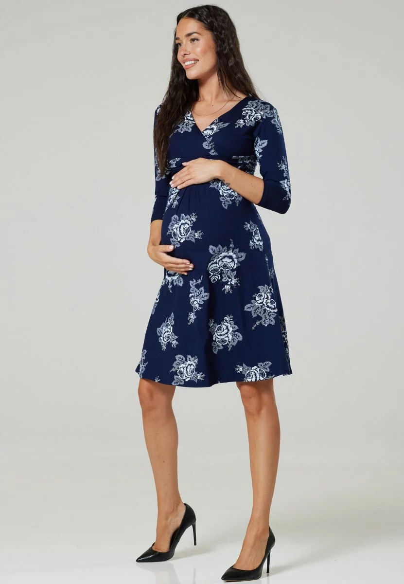Happy Mama 3/4 Sleeve V-Neck- Jerseyjurk – Navy / White Flowers