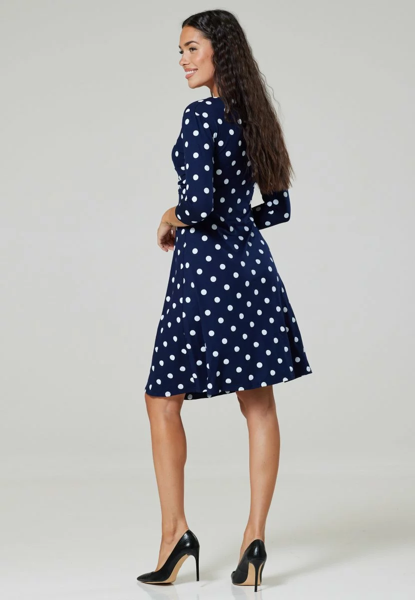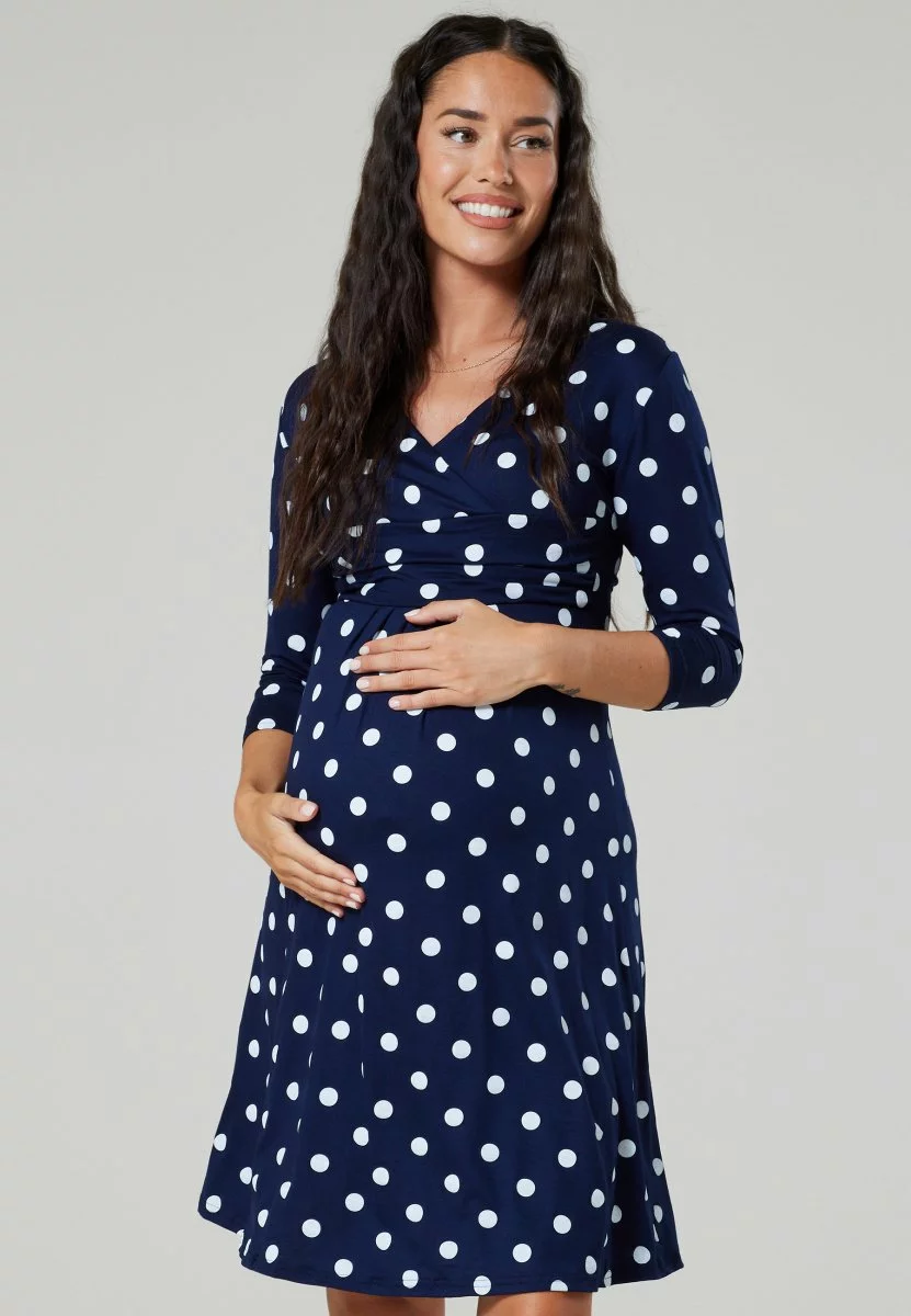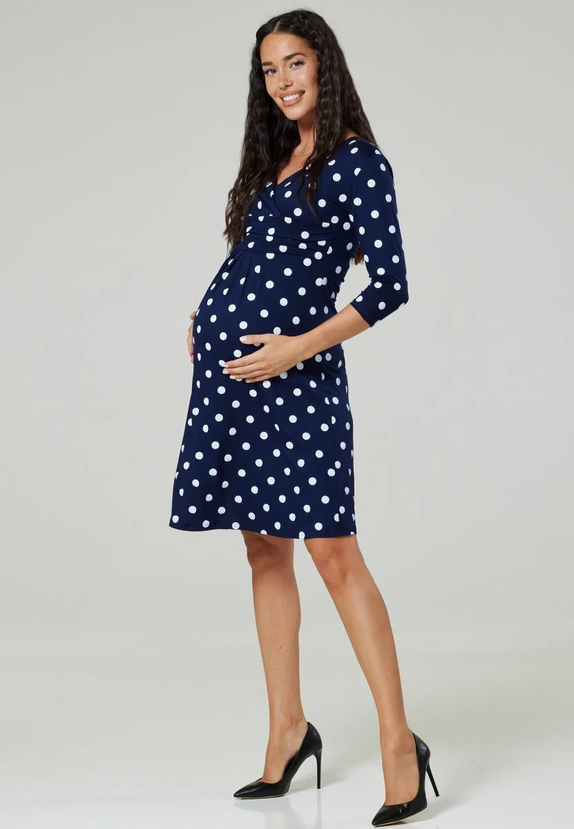 Happy Mama 3/4 Sleeve V-Neck- Jerseyjurk – Navy With Large Dots