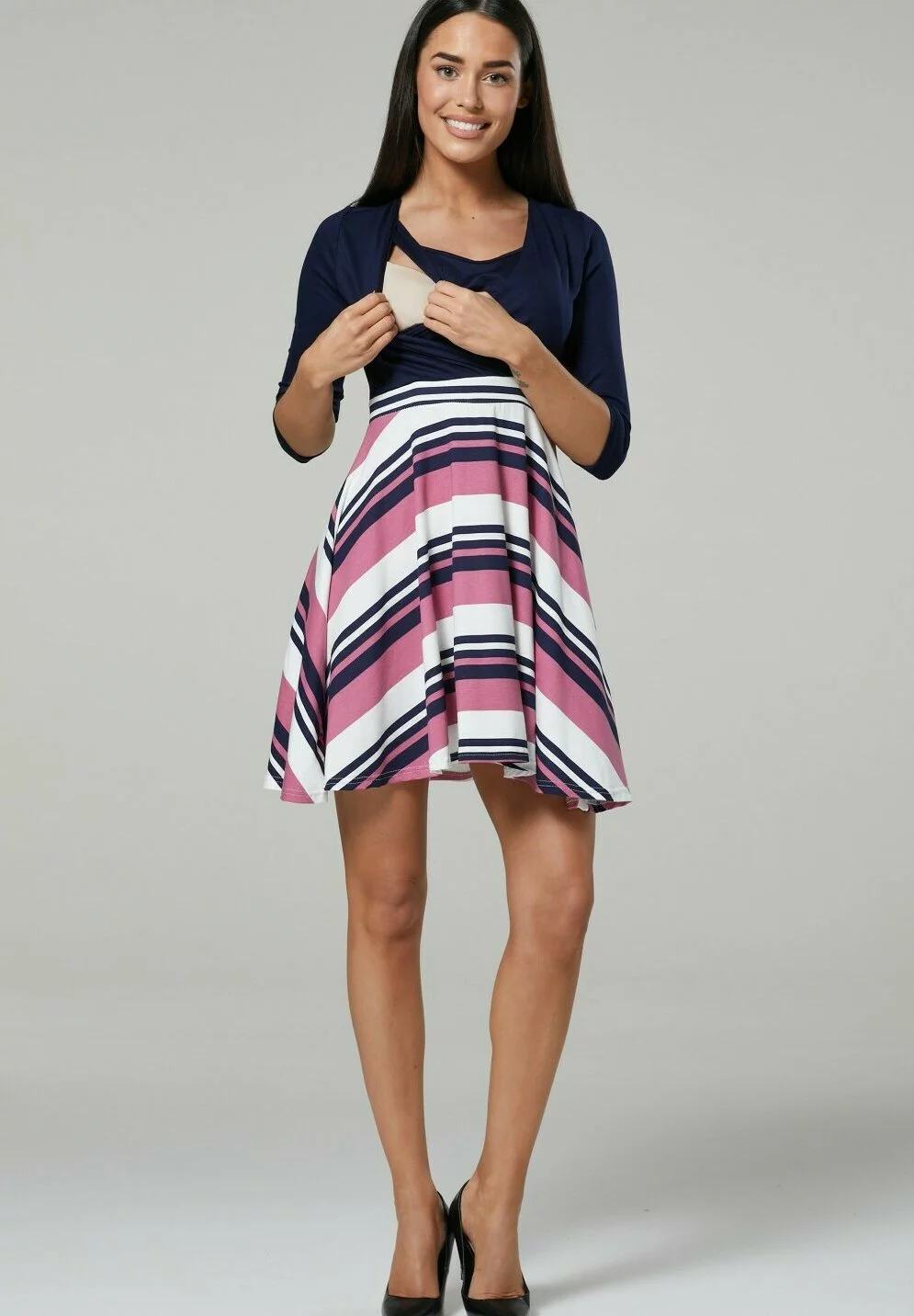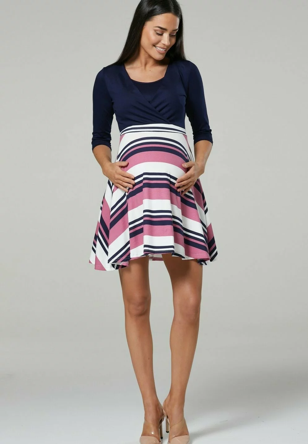 Happy Mama Jerseyjurk – Navy Dusky Pink Stripes