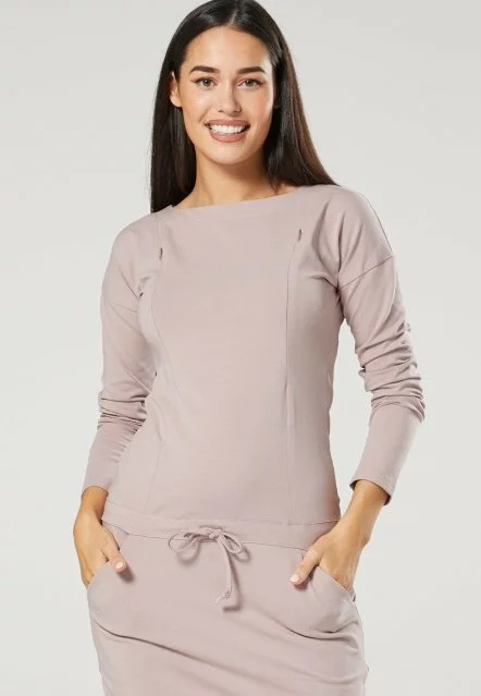 | Details | Elastische tailleband, steekzakken, makkelijk borstvoeden, ritssluiting |
