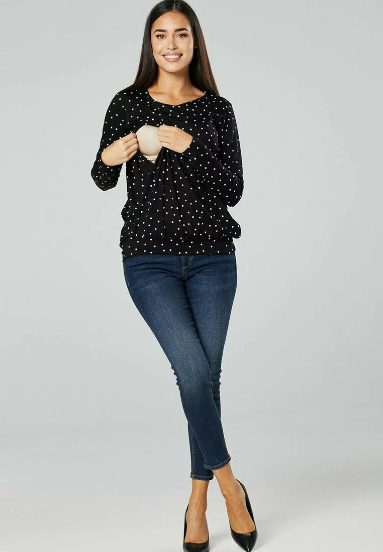 Happy Mama Layered- Longsleeve – Black With Small White Dots