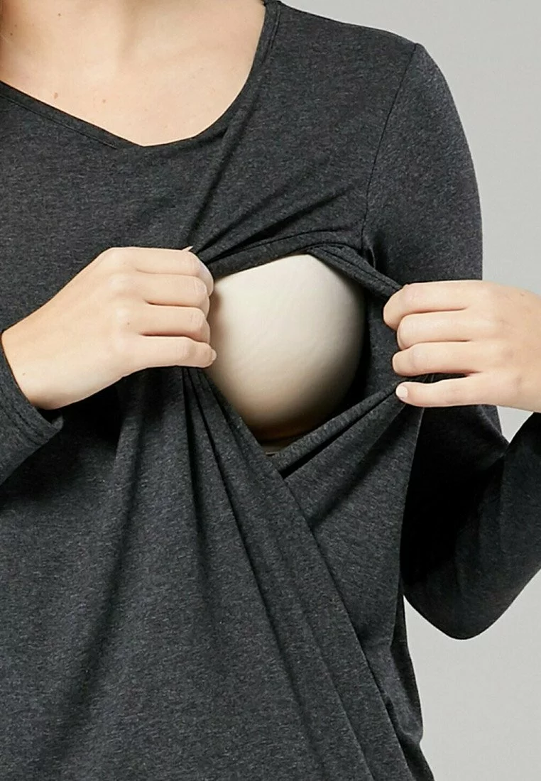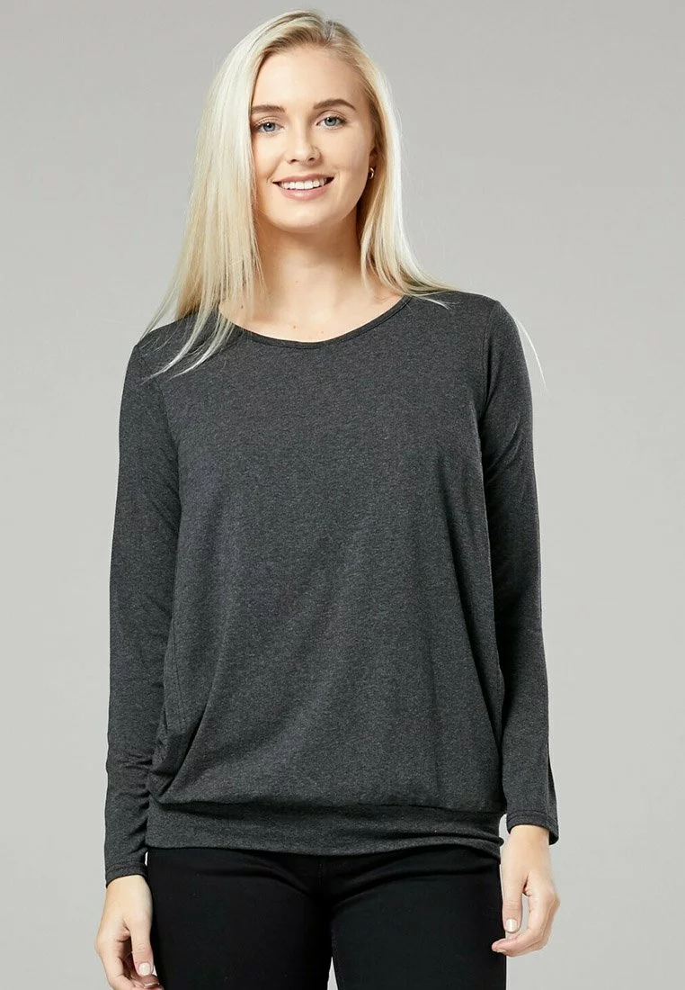 Happy Mama Layered- Longsleeve – Graphite Melange