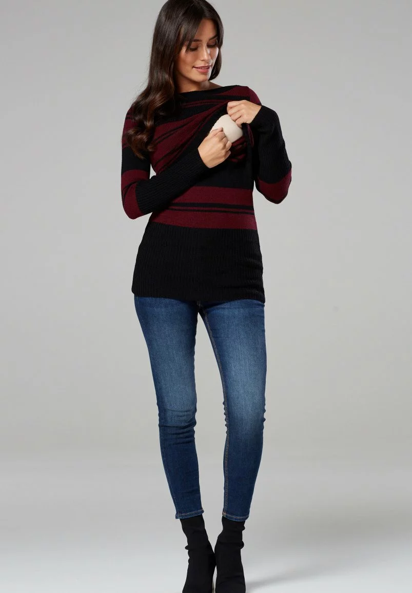 Happy Mama Long Sleeves – Trui – Black/Crimson