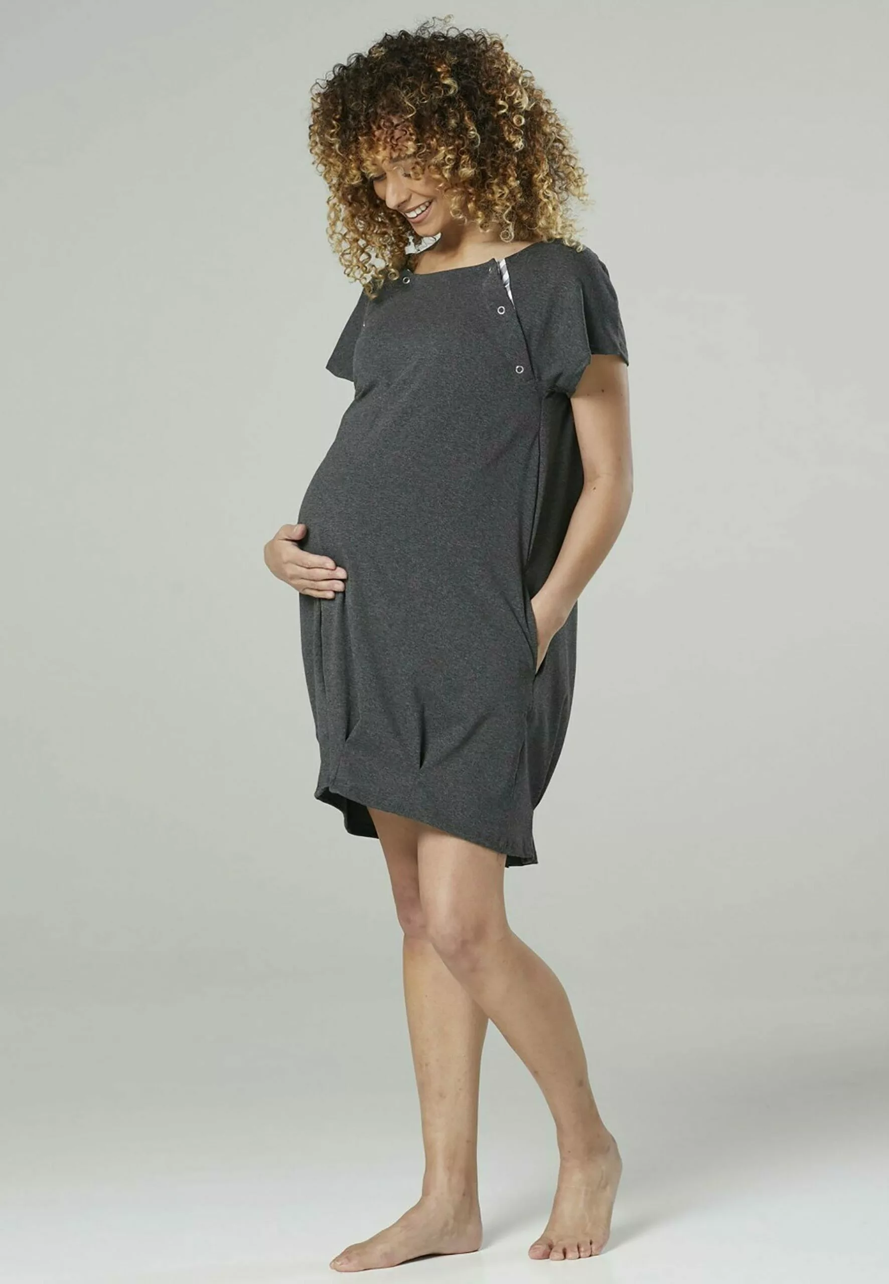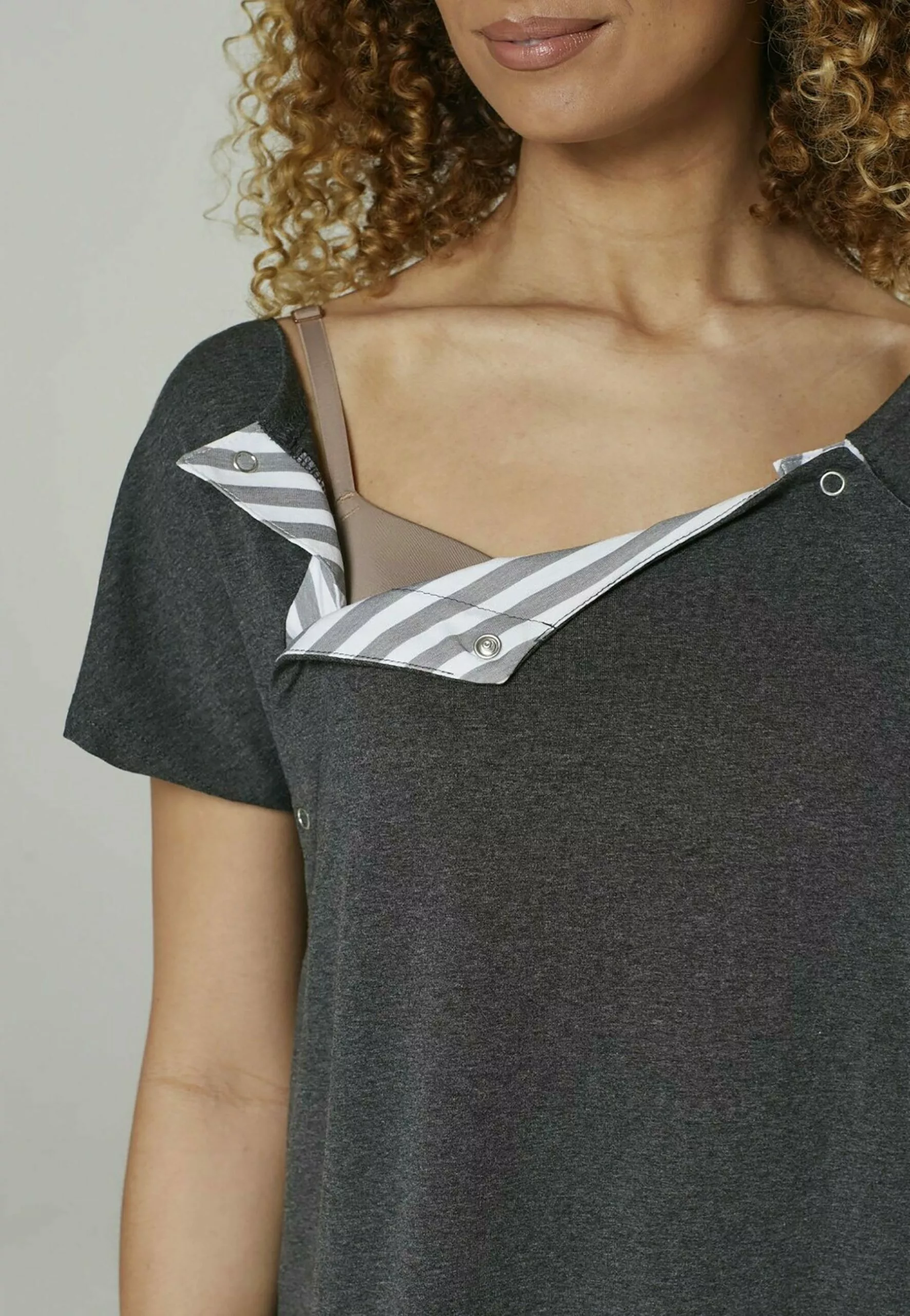 Happy Mama Maternity And Breastfeeding Nightshirt – Jerseyjurk – Light Grey