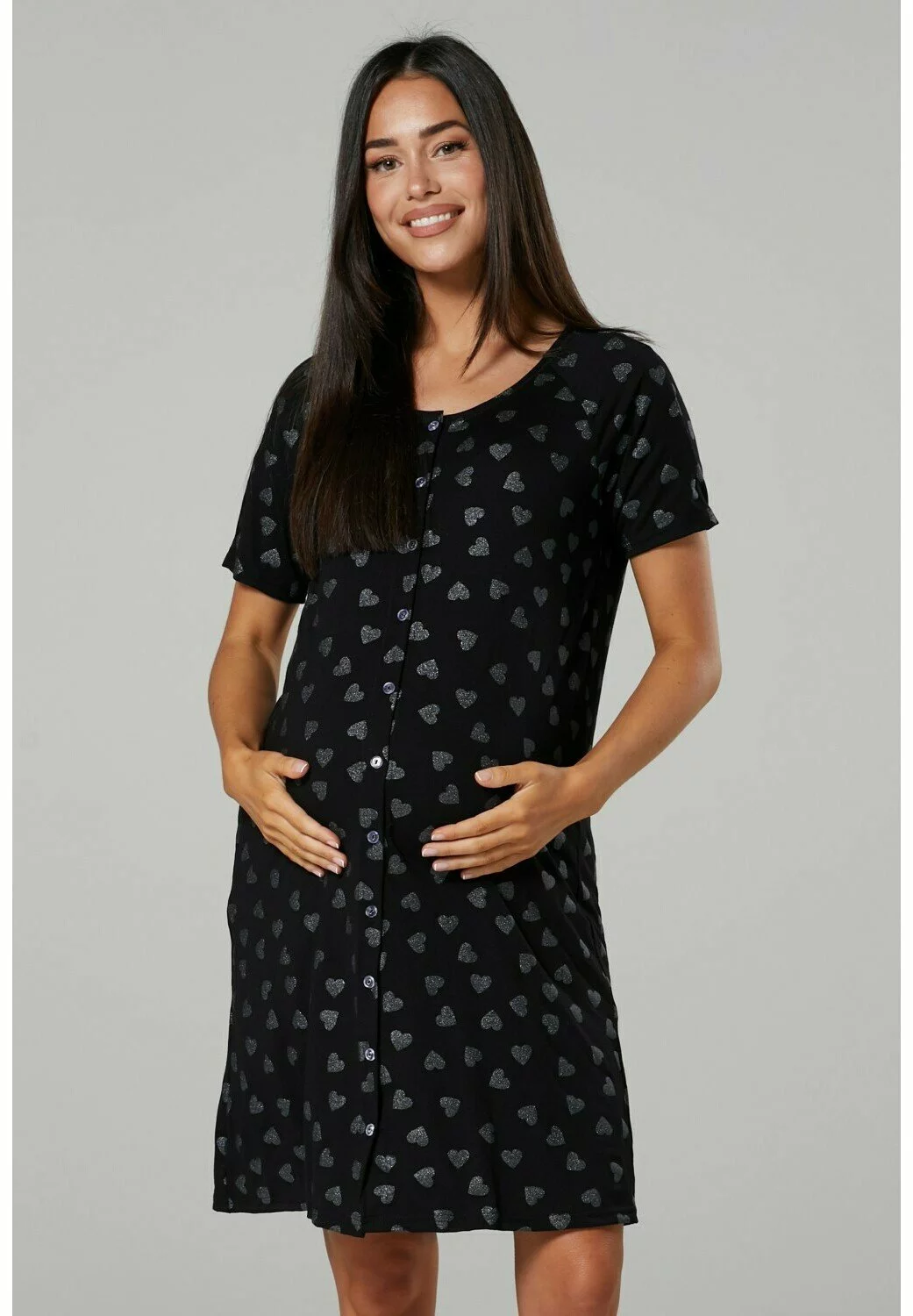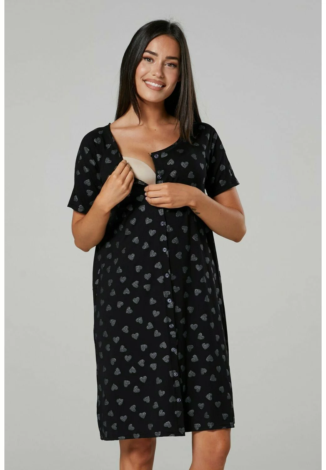 Happy Mama Maternity Breastfeeding 2-Pack – Nachtjapon – Graphite MelangeBlack With Hearts