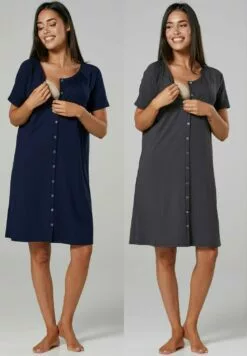 Happy Mama Maternity Breastfeeding 2-Pack – Nachtjapon – Navy Graphite