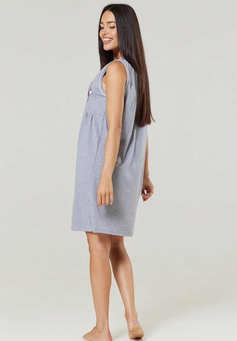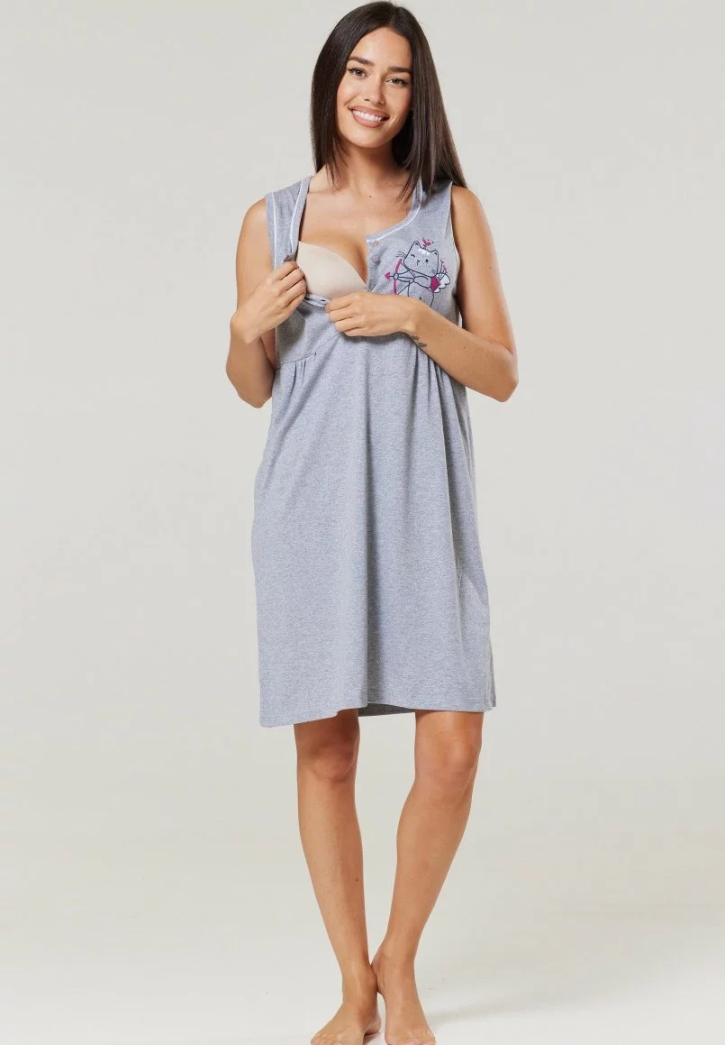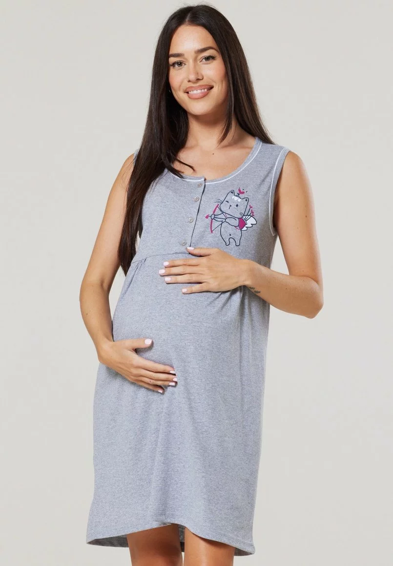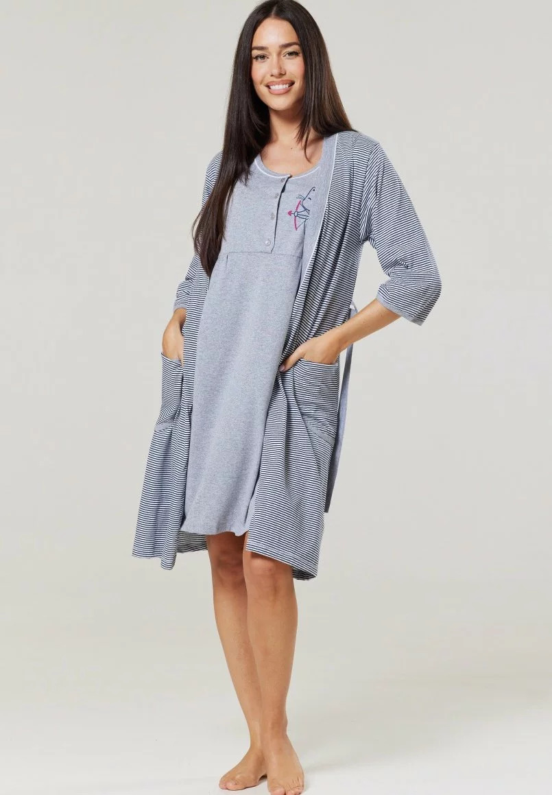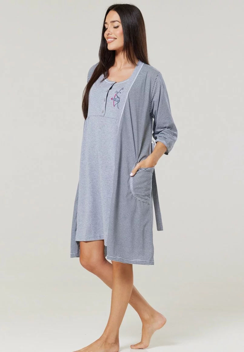 Happy Mama Maternity Breastfeeding 2-Pack – Nachtjapon – Graphite Melange Ecru With Flowers