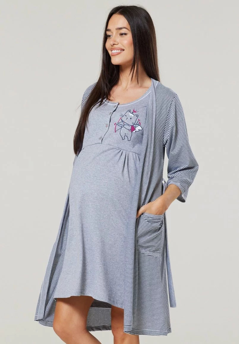 Happy Mama Maternity Hospital Set Labour & Birth – Nachtjapon – Graphite