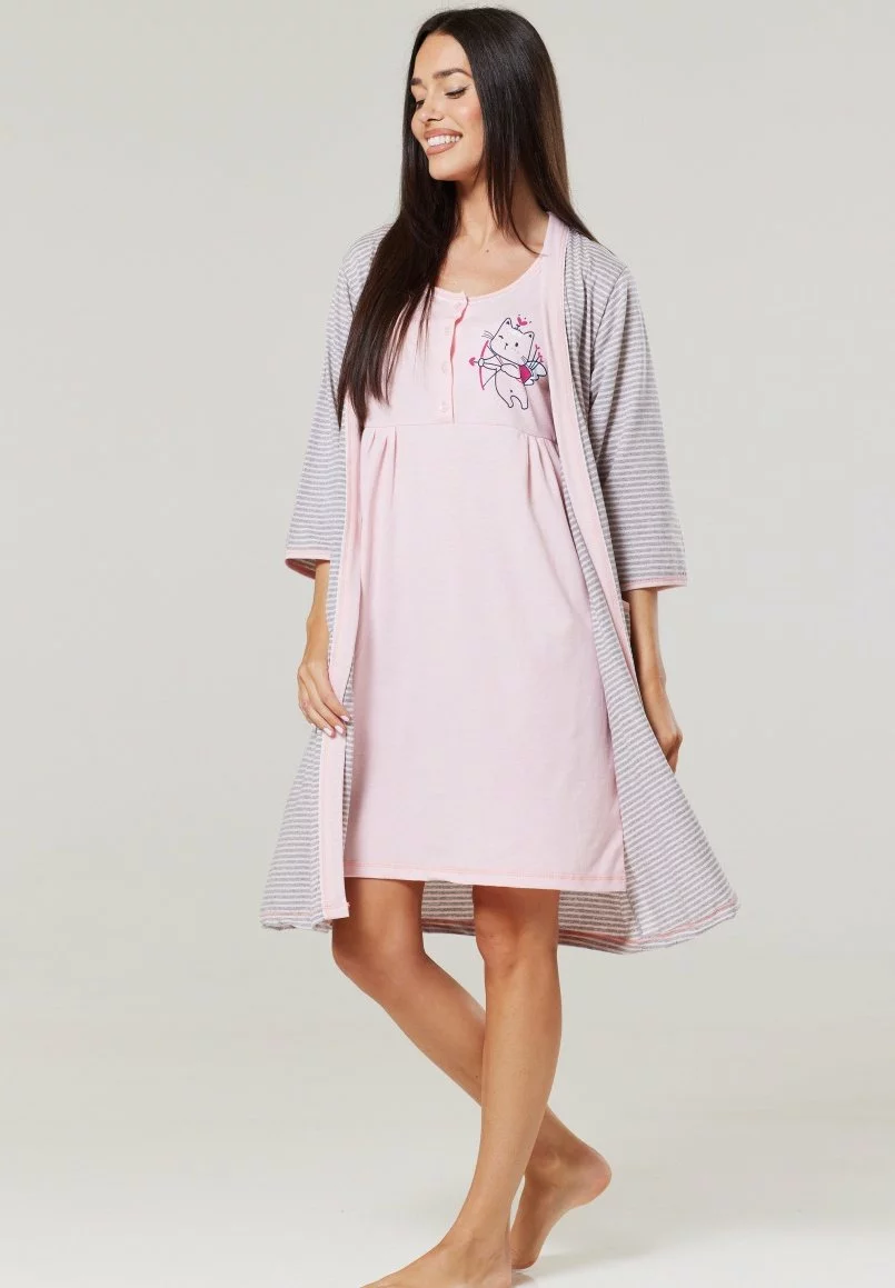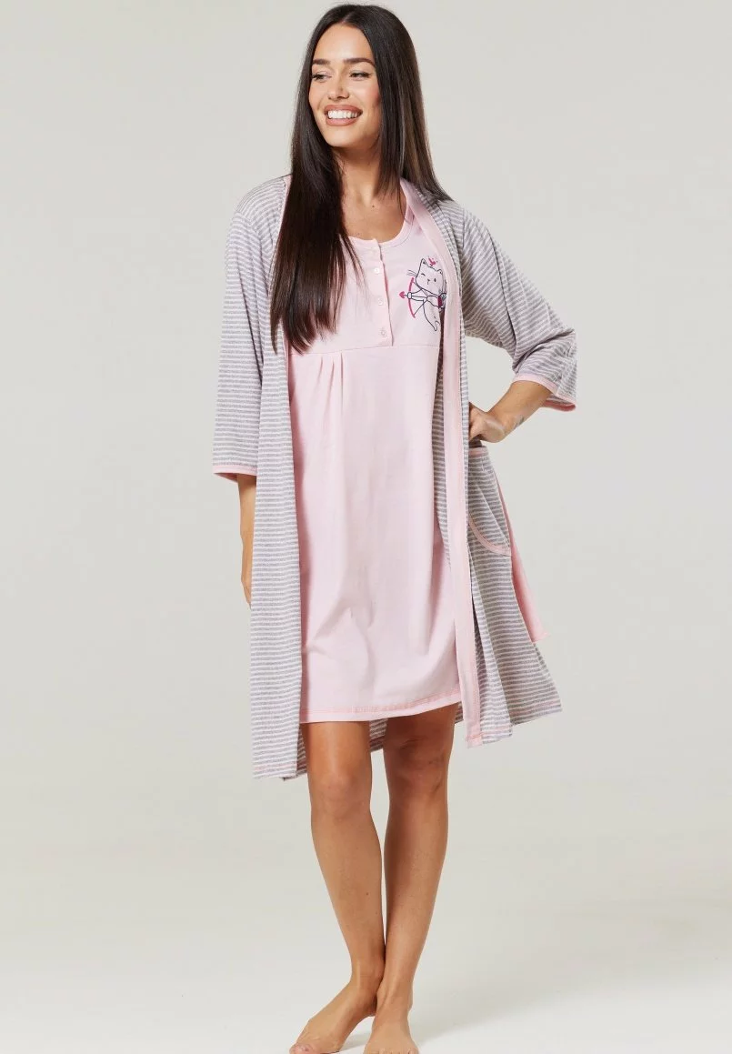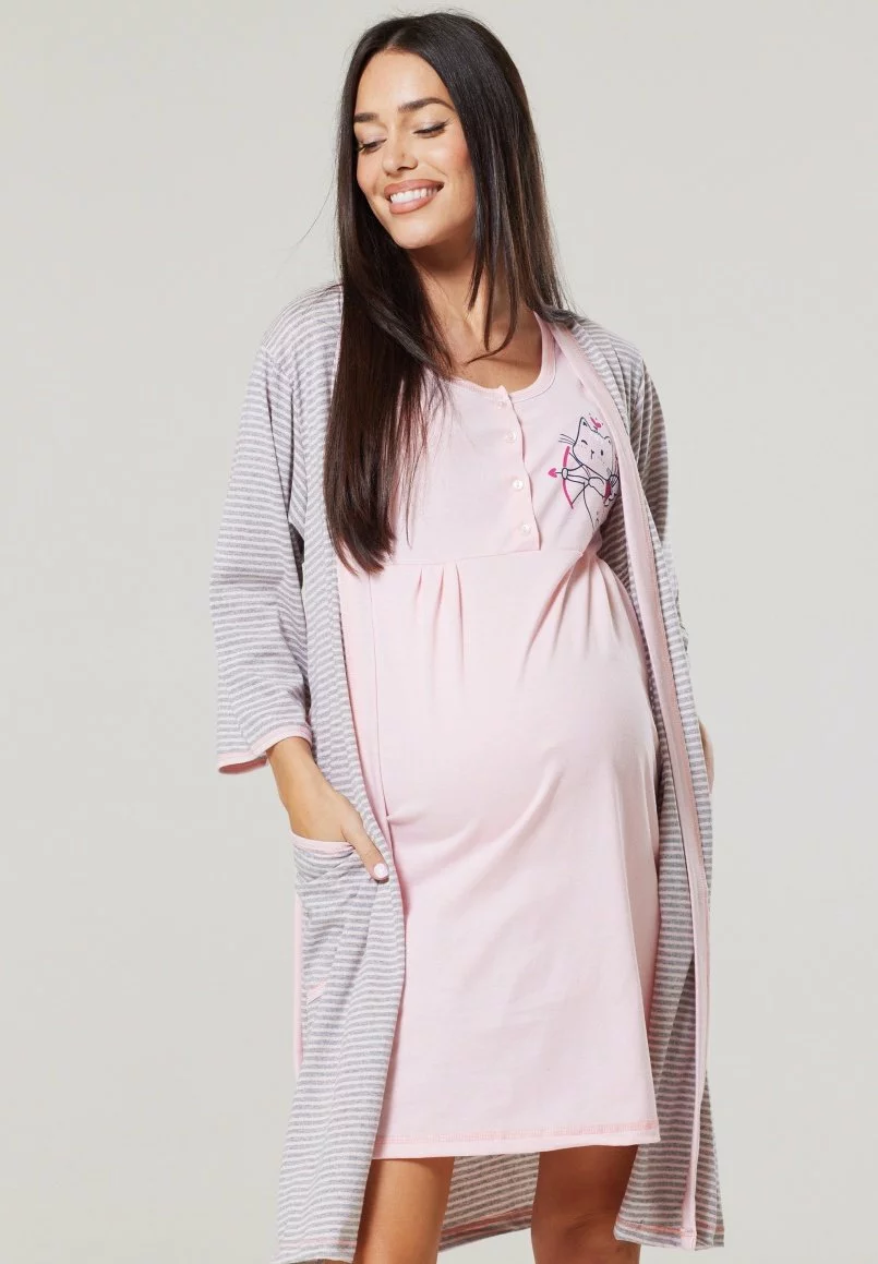 Happy Mama Maternity Hospital Set Labour & Birth – Nachtjapon – Powder Pink