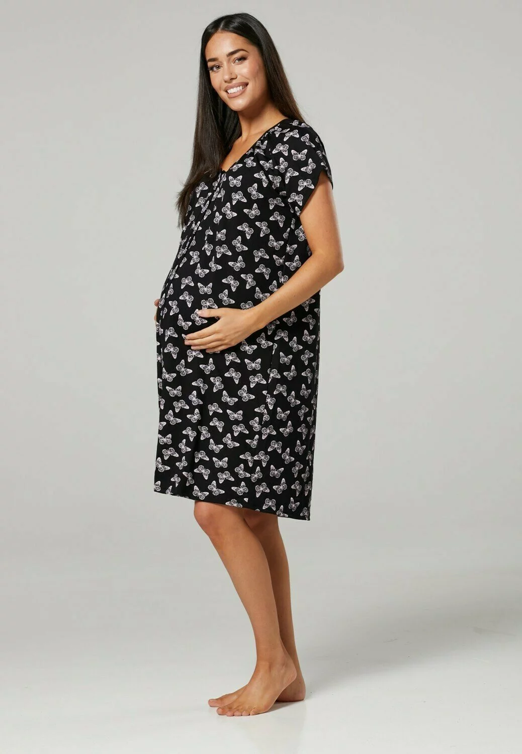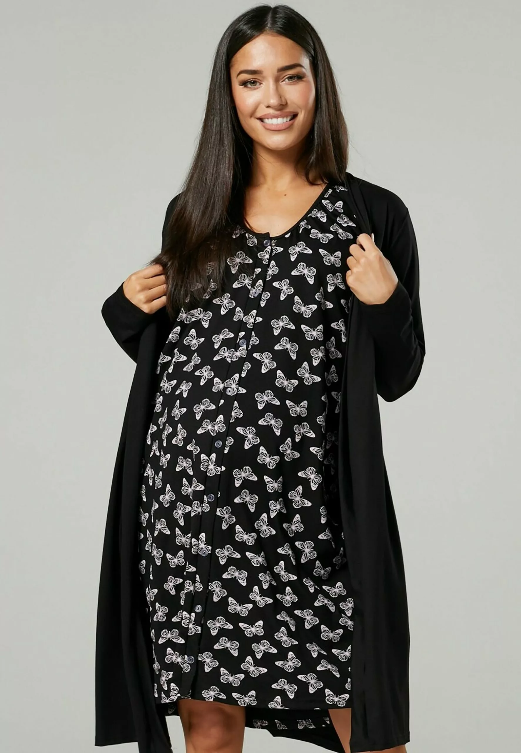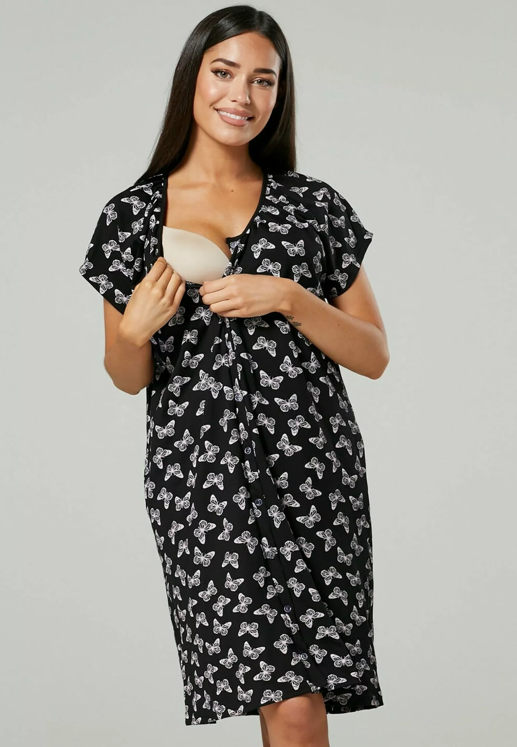 Happy Mama Maternity Hospital Set – Nachtjapon – Black With Butterflies