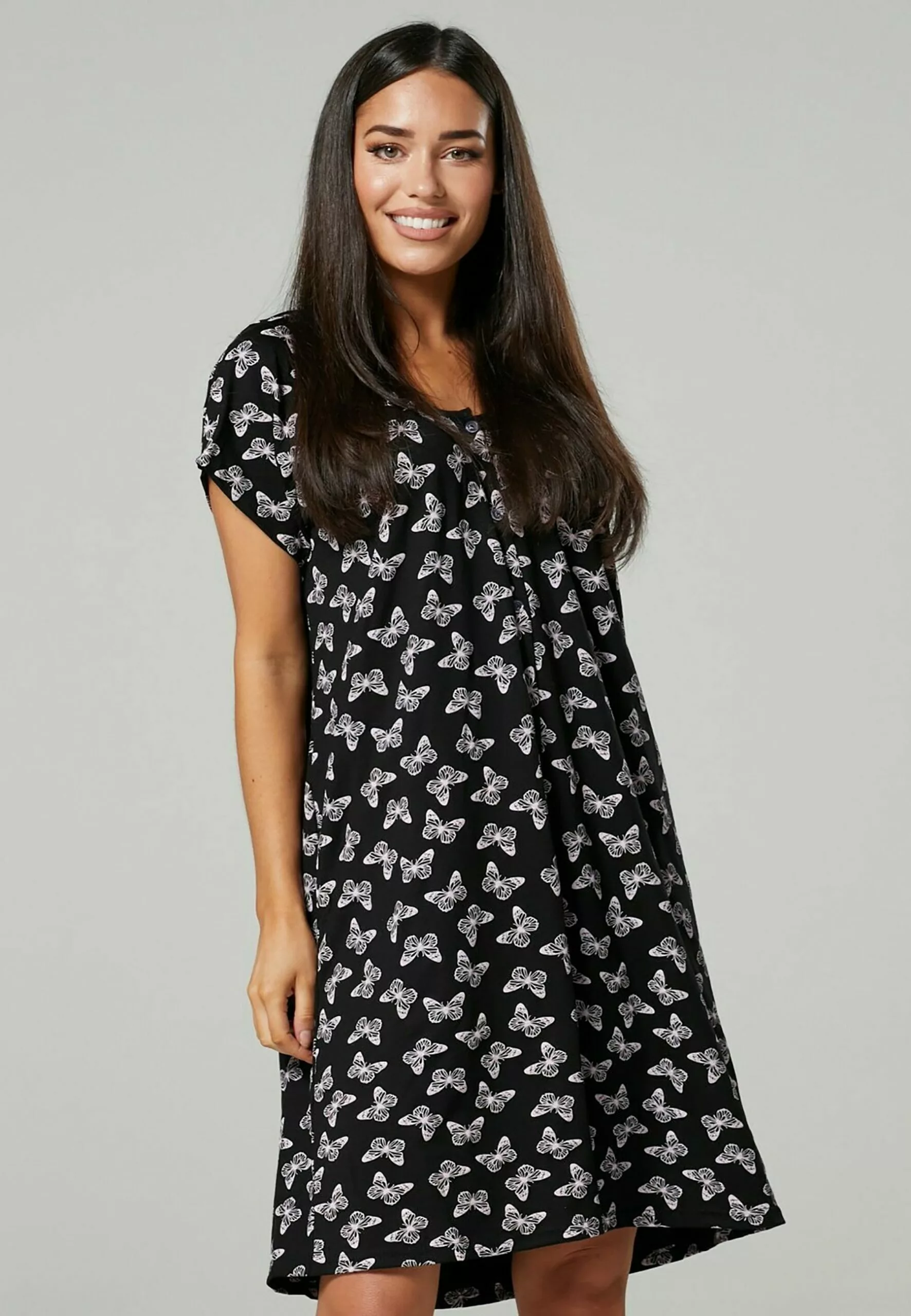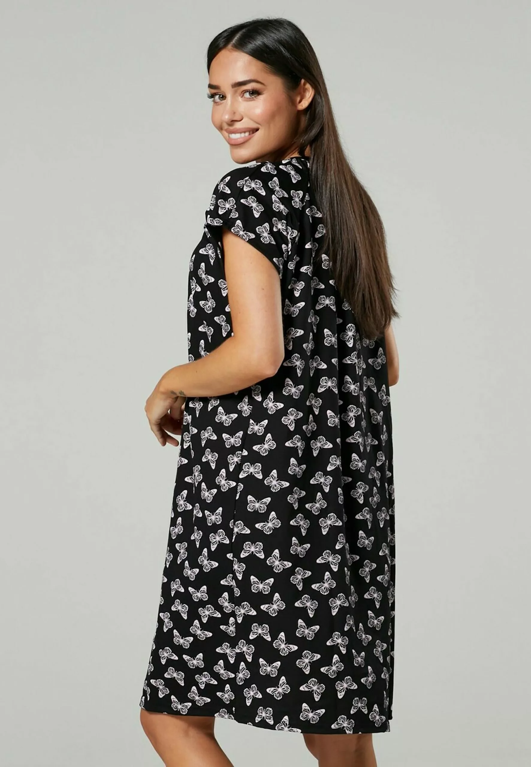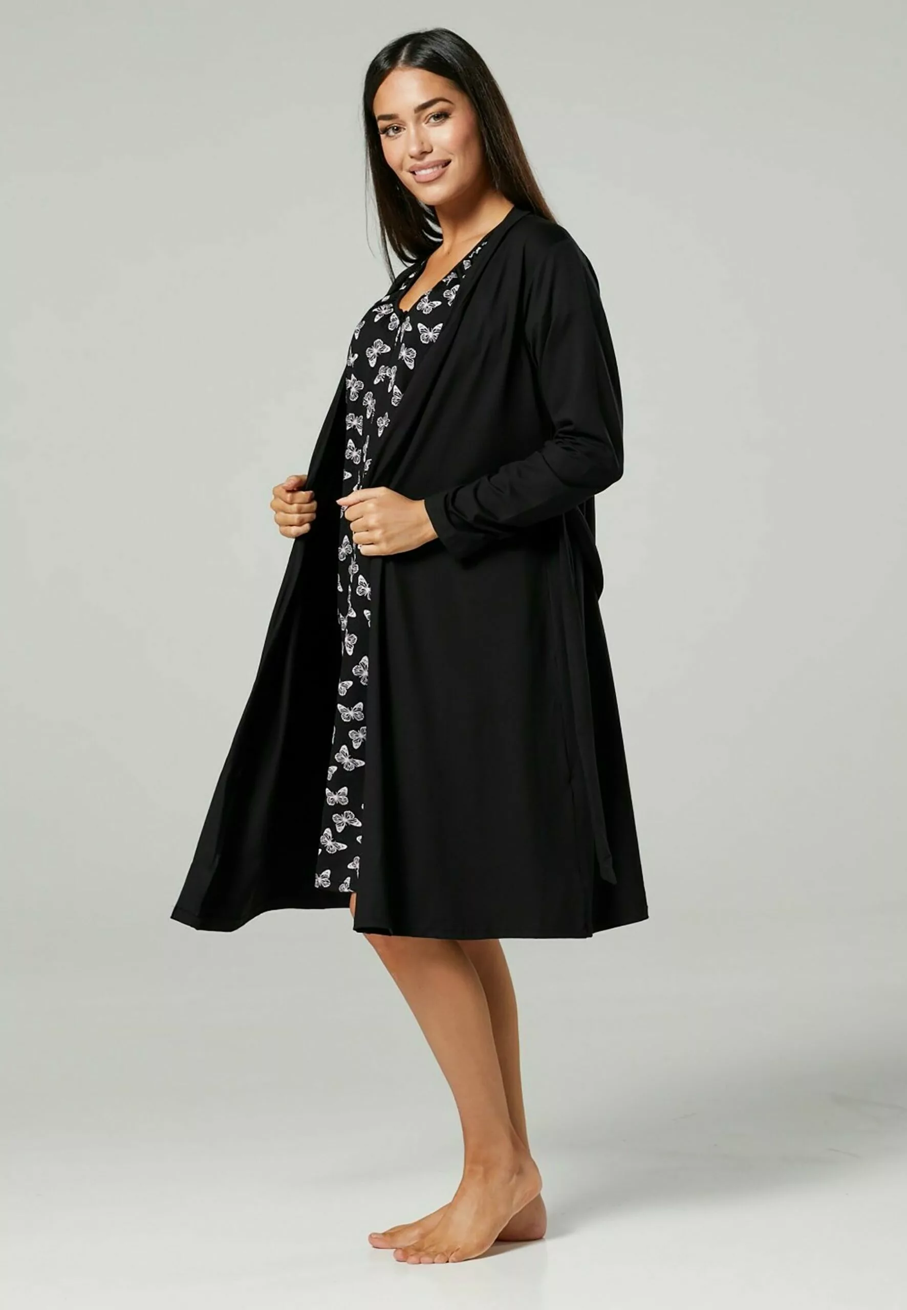 Happy Mama Maternity Hospital Set – Nachtjapon – Black With Butterflies