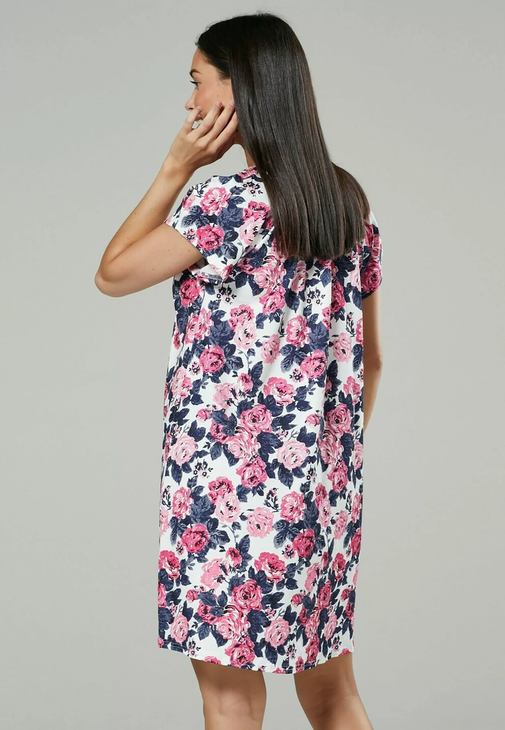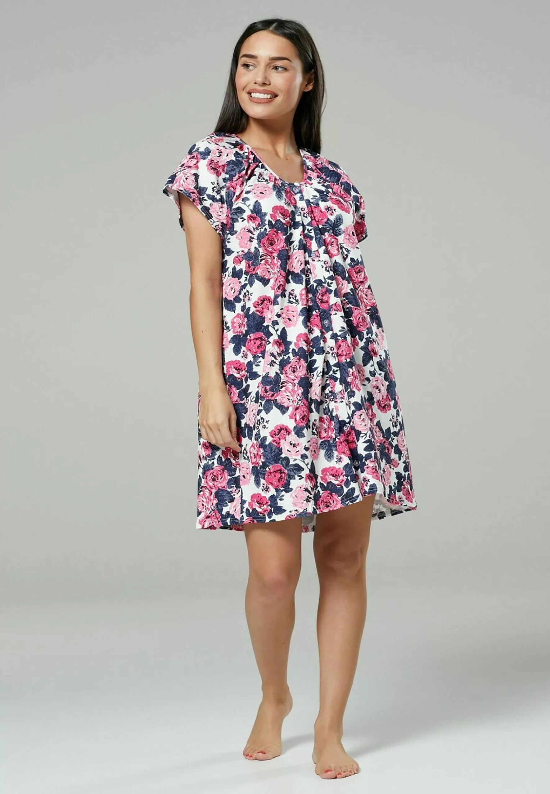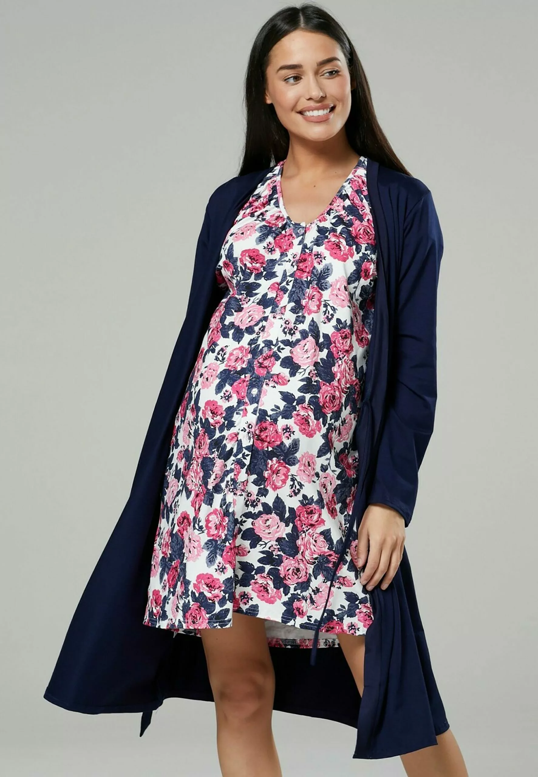 Happy Mama Maternity Hospital Set – Nachtjapon – Navy And Ecru With Flowers