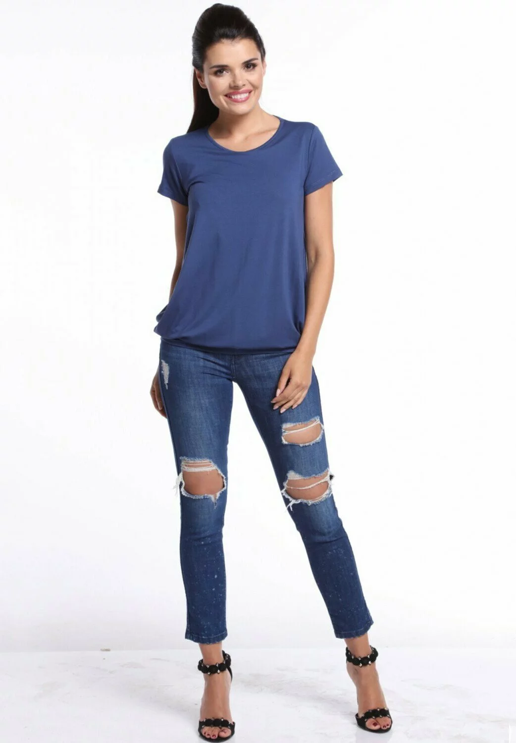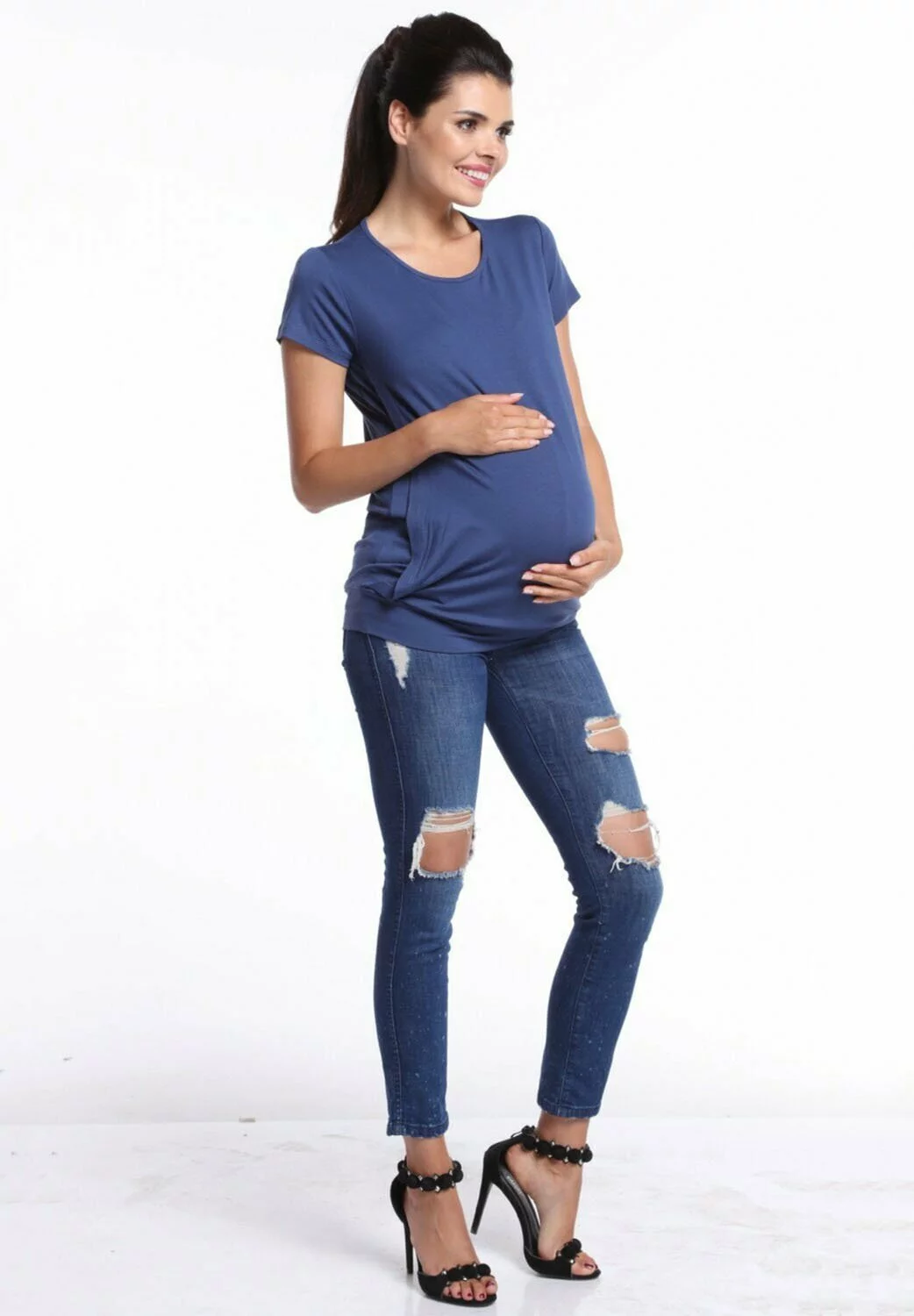 Happy Mama Maternity Layered- T-Shirt Print – Blue Grey