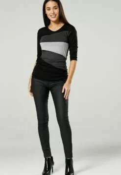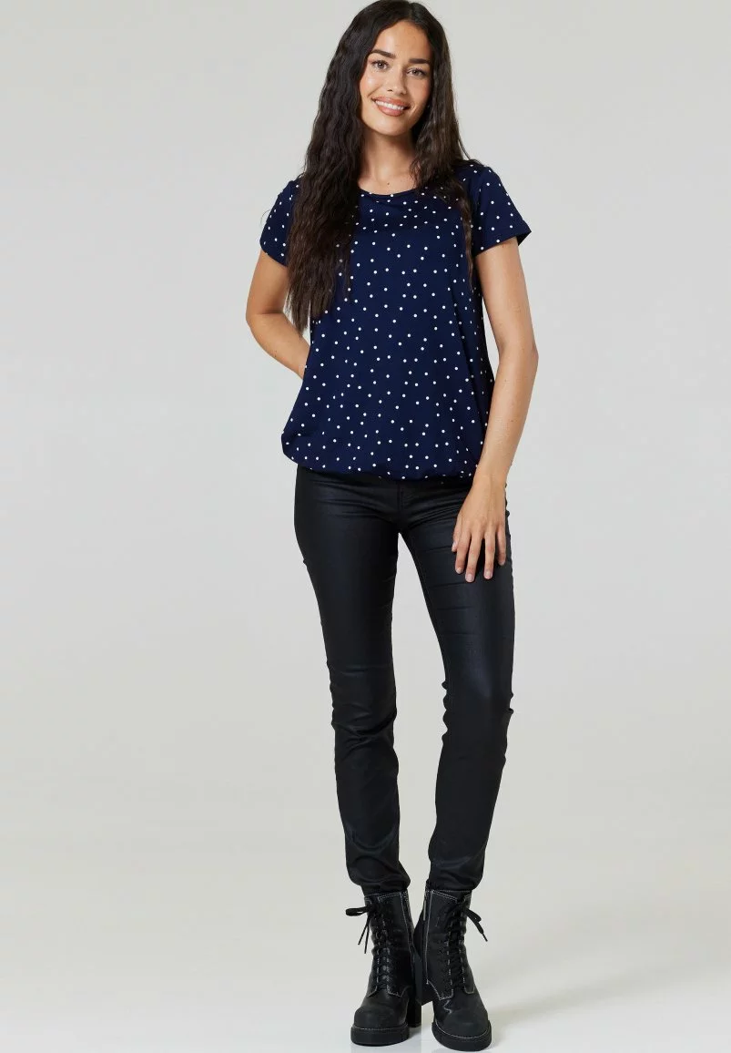 Happy Mama Maternity Layered- T-Shirt Print – Navy With Small White Dots