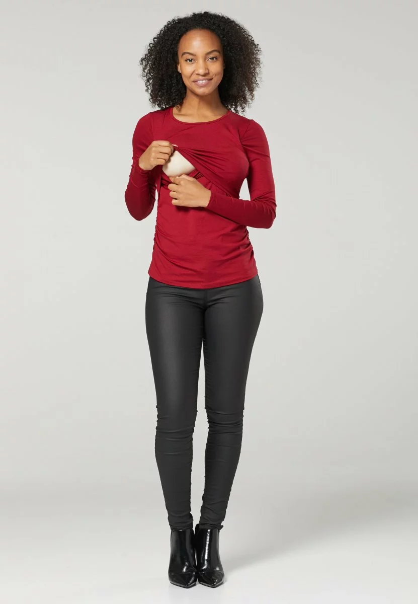 Happy Mama Maternity Nursing- Longsleeve – Crimson