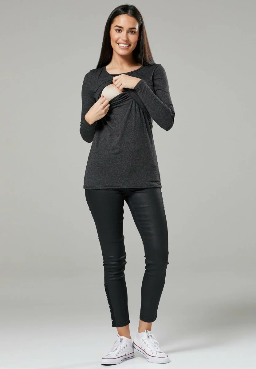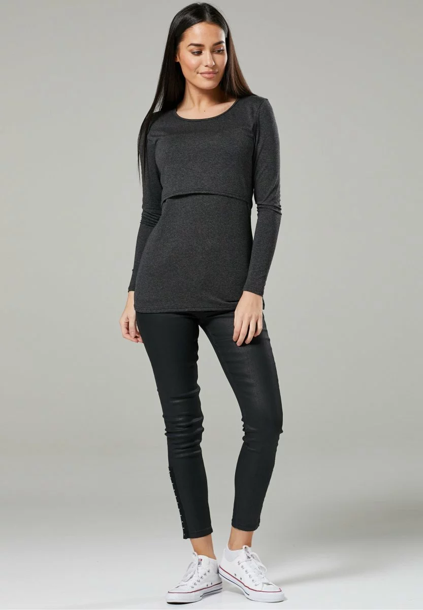 Happy Mama Maternity Nursing- Longsleeve – Graphite Melange