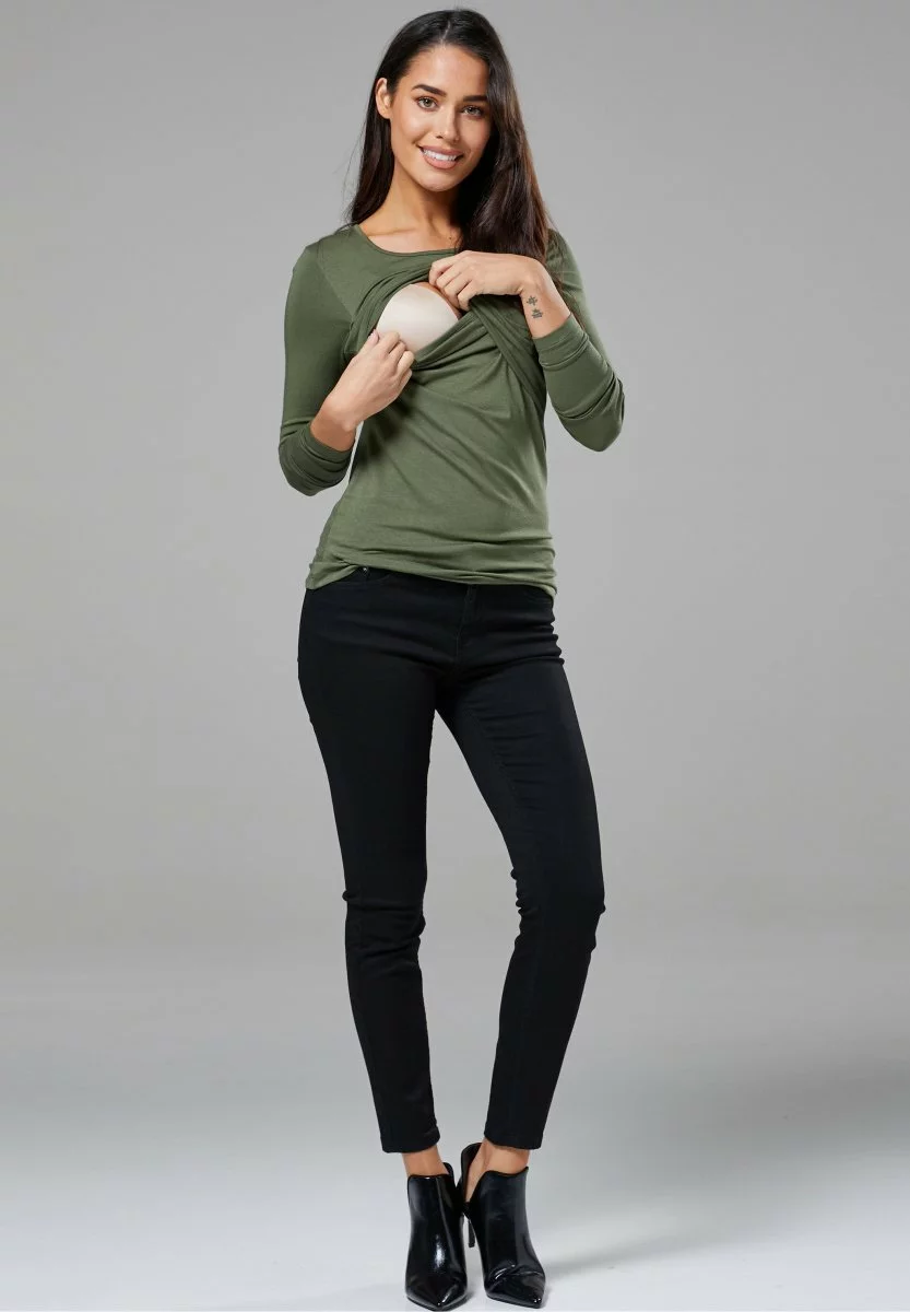Happy Mama Maternity Nursing- Longsleeve – Khaki