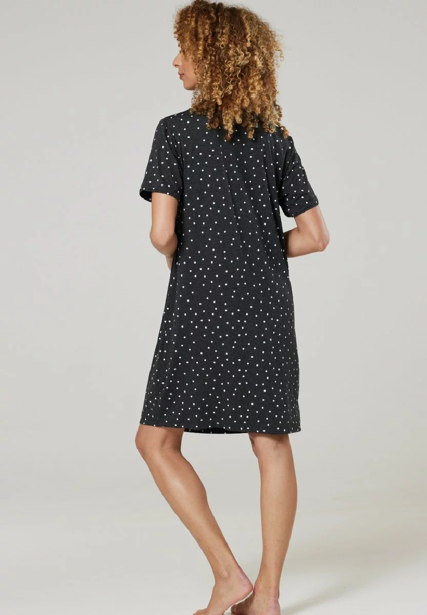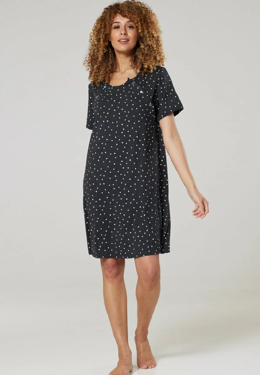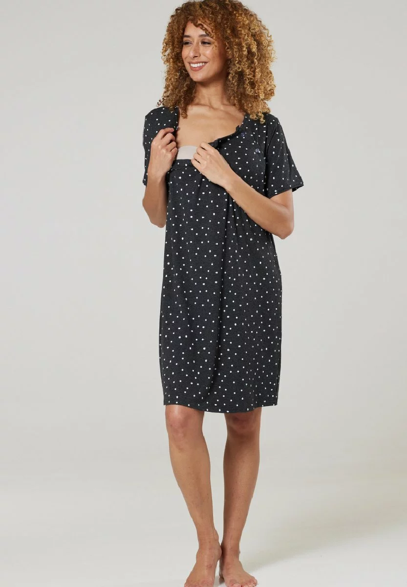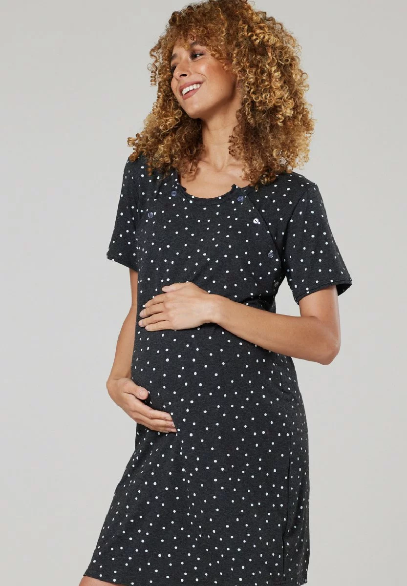 Happy Mama Maternity Breastfeeding 2-Pack – Nachtjapon – BlackGraphite Melange With Dots