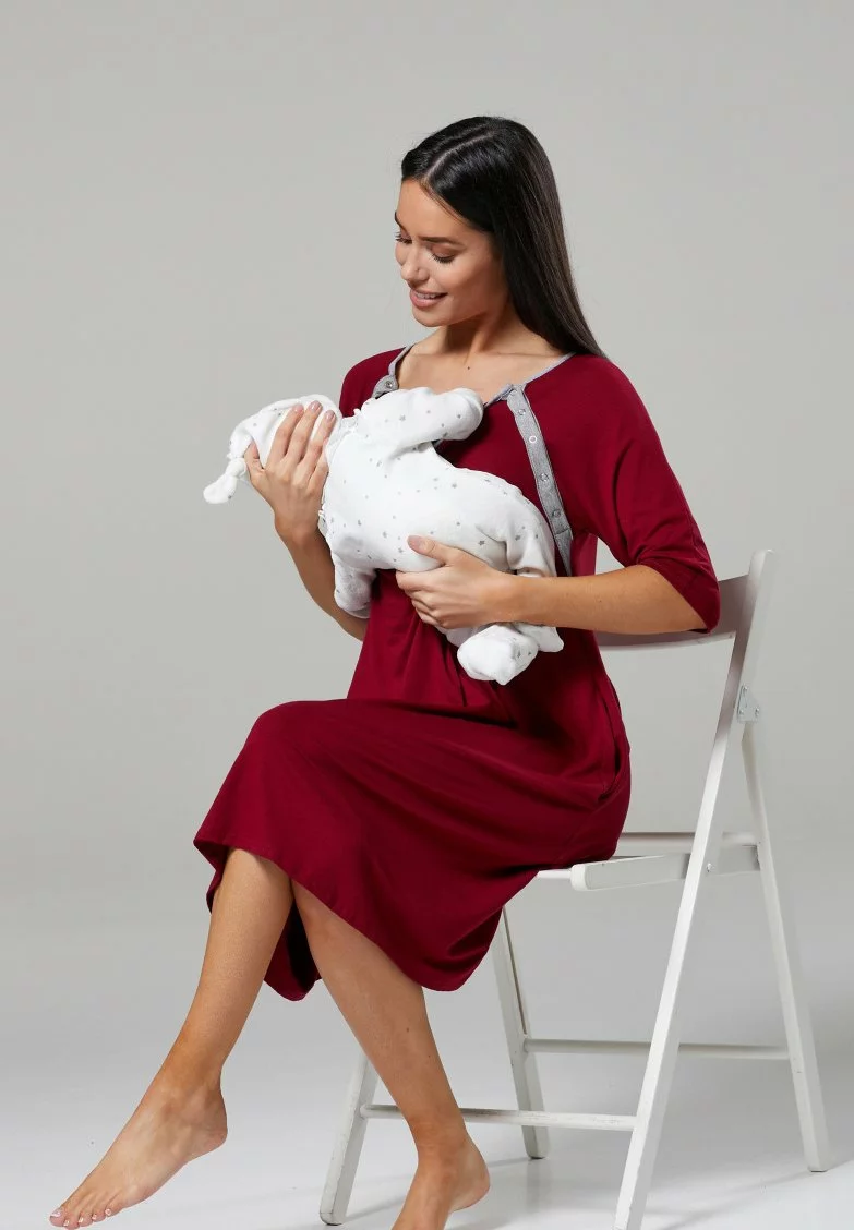 Happy Mama Maternity Nursing Delivery Hospital – Nachtjapon – Plum & Graphite Melange