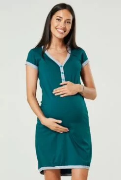 Happy Mama Nursing- Nachtjapon – Bottle Green And Grey Melange