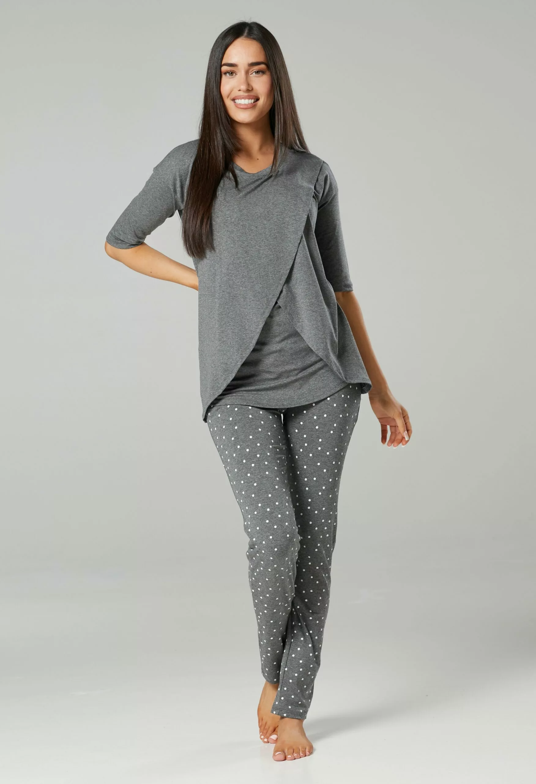 Happy Mama Pyjama – Graphite Melange & Graphite With Dots