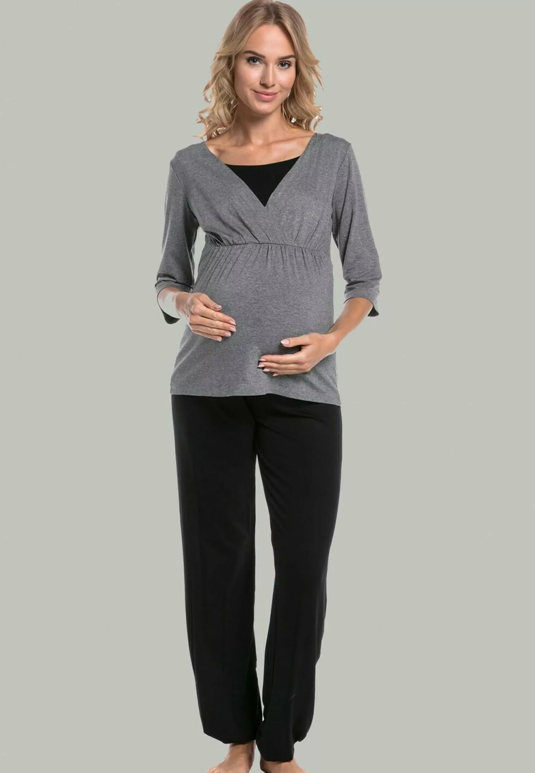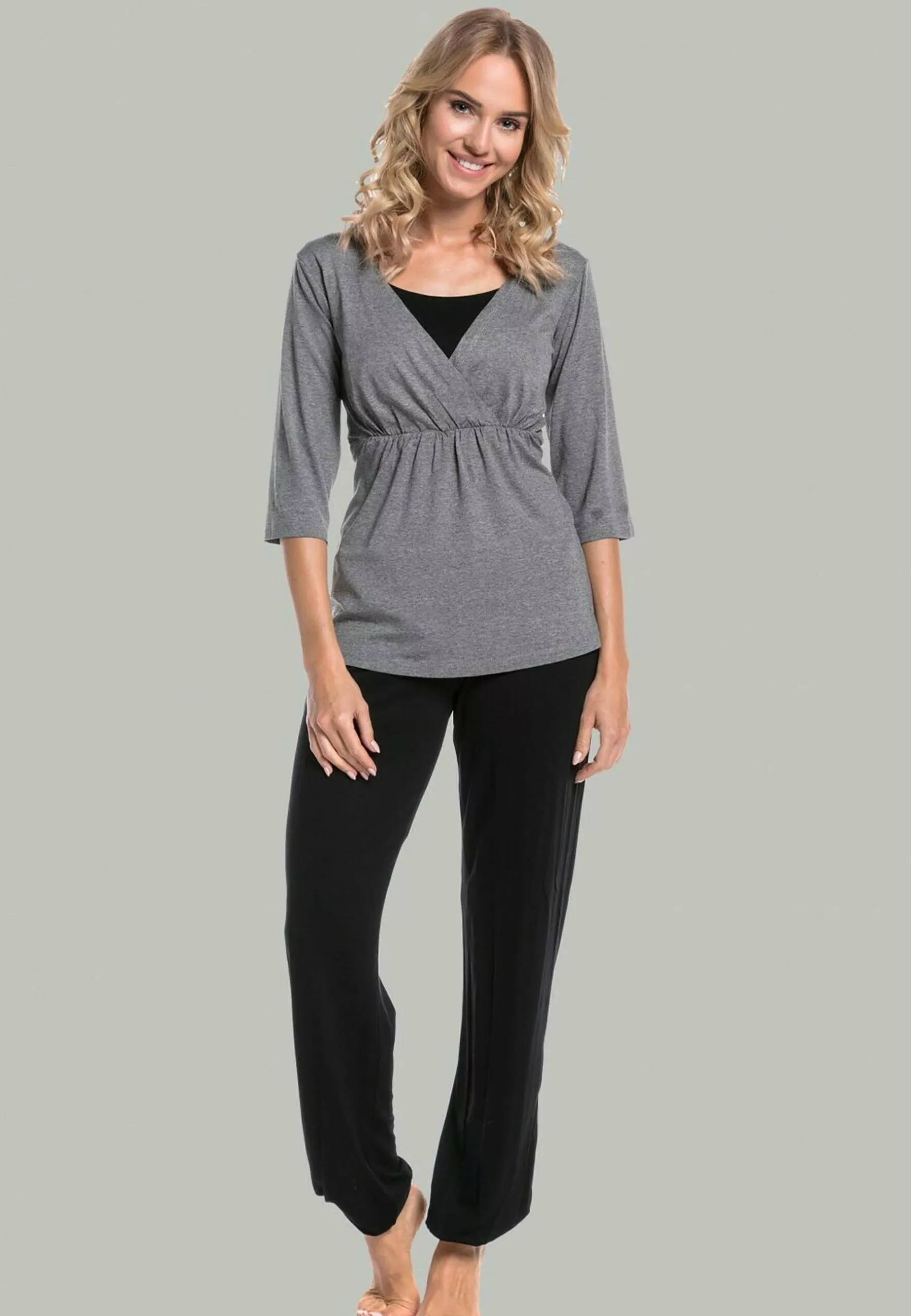 Happy Mama Set – Pyjama – Grey Melange & Black