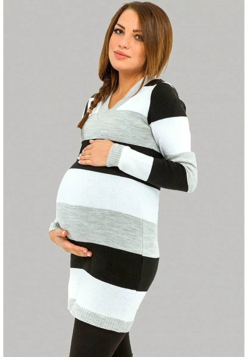Happy Mama Stretchy Warm Stripes – Gebreide Jurk – Black