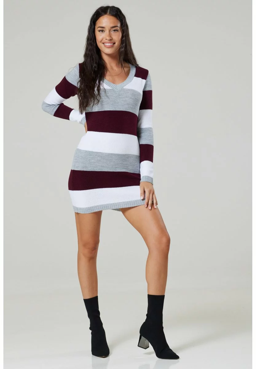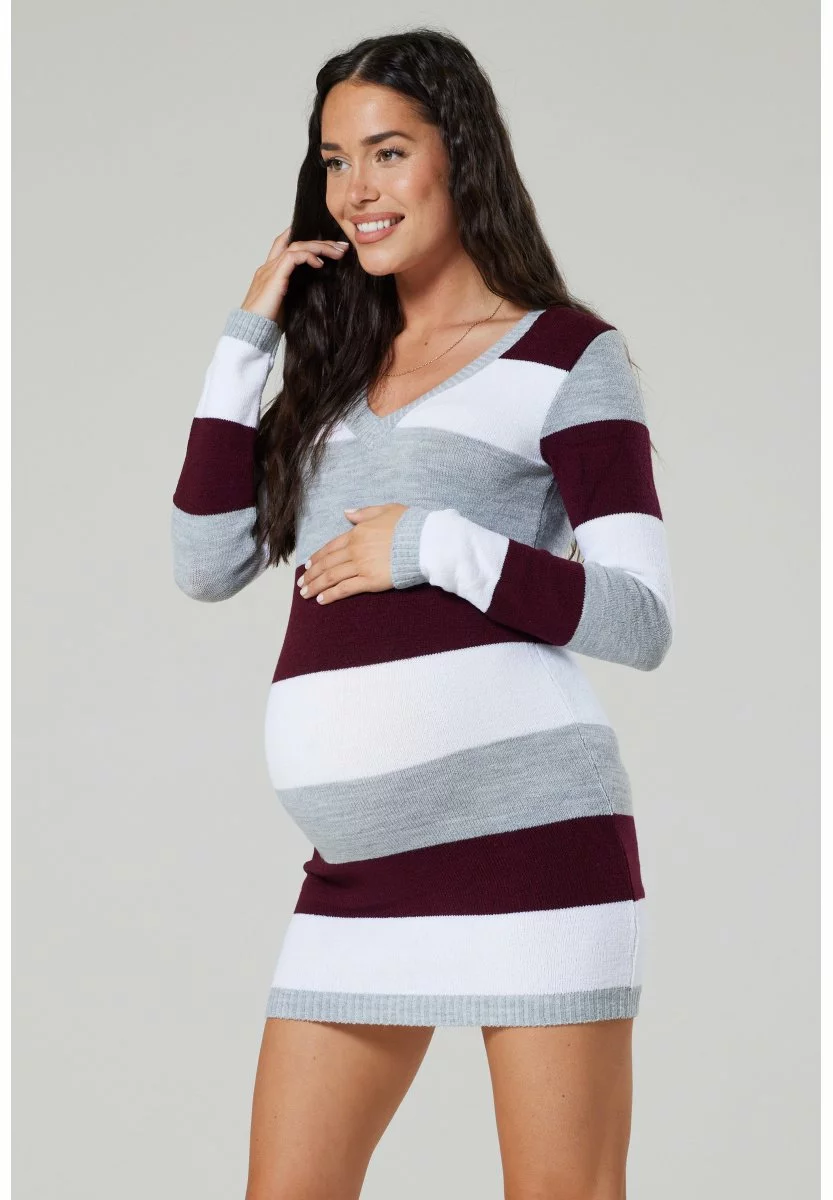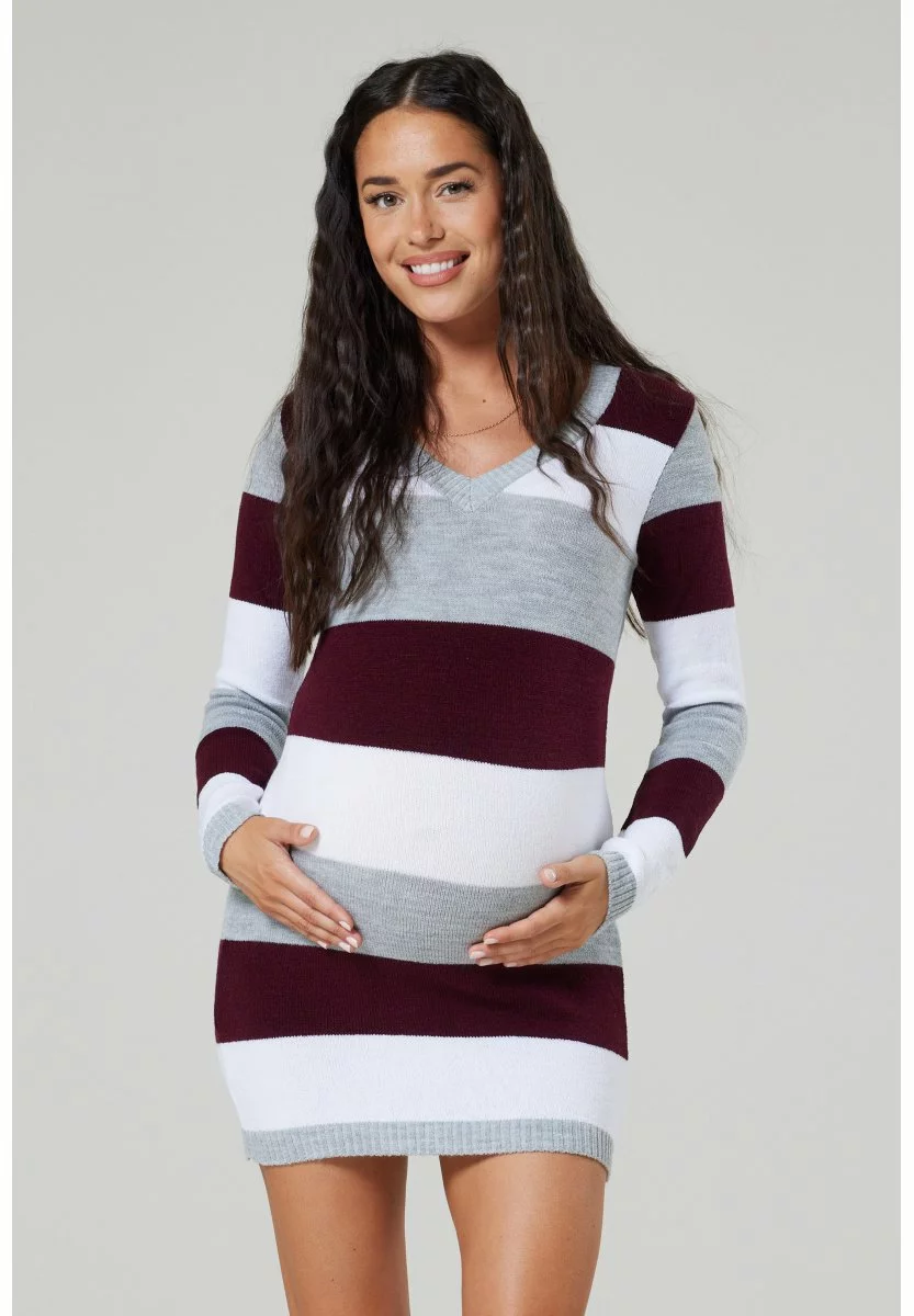 Happy Mama Stretchy Warm Stripes – Gebreide Jurk – Crimson
