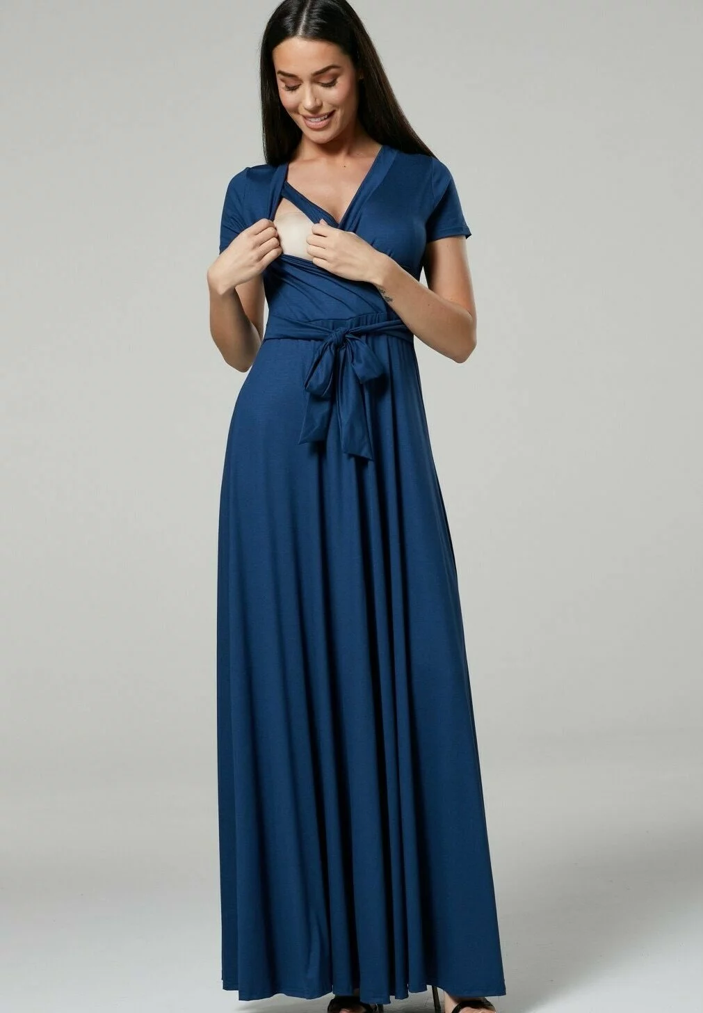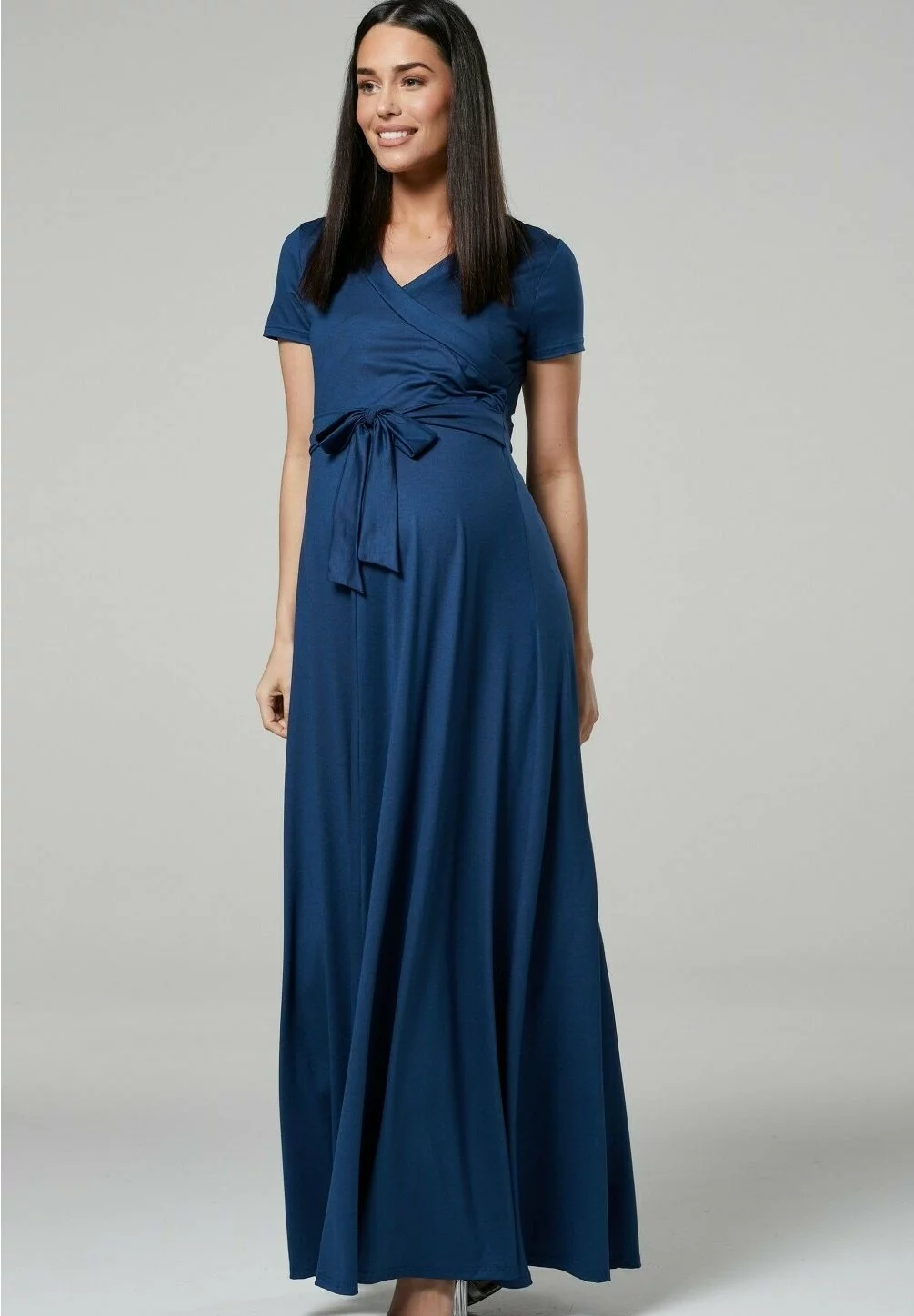 Happy Mama Wrap Short Sleeve – Maxi-Jurk – Blue Grey