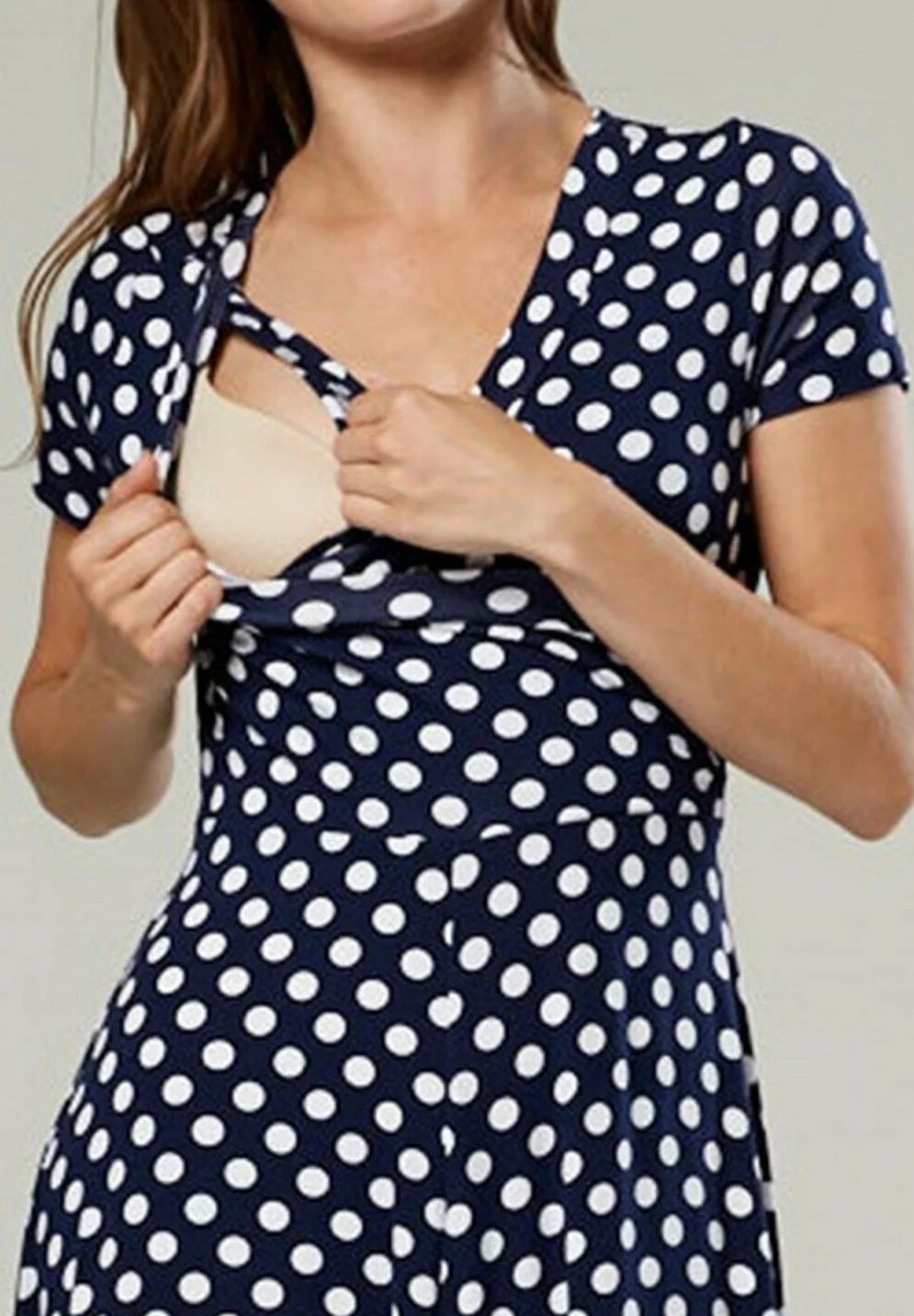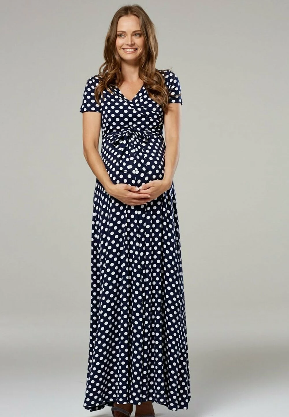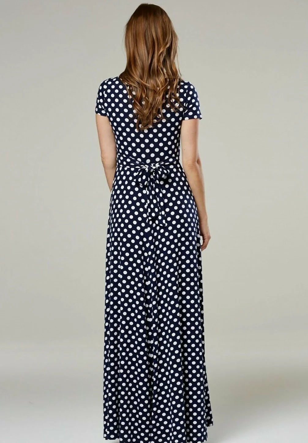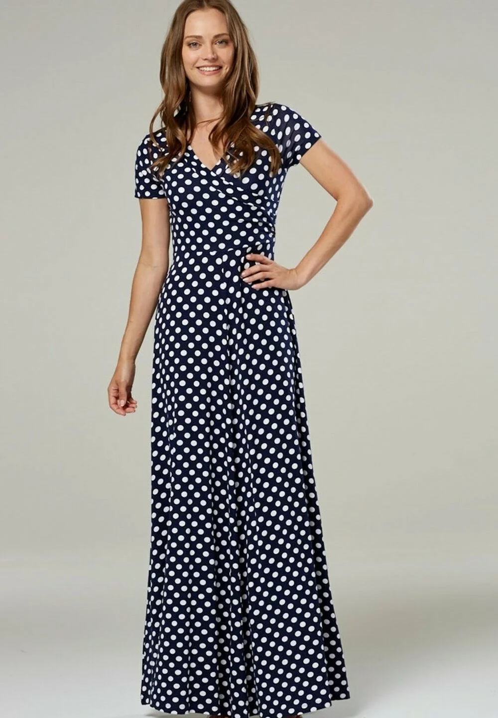 Happy Mama Wrap Short Sleeve – Maxi-Jurk – Navy With Dots